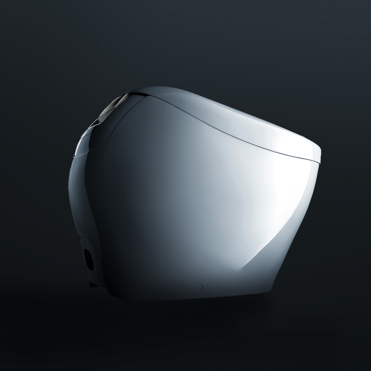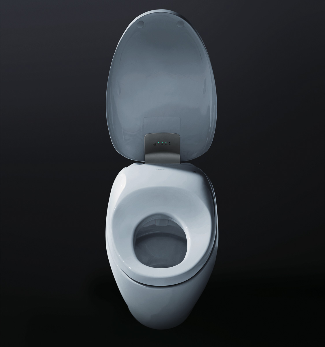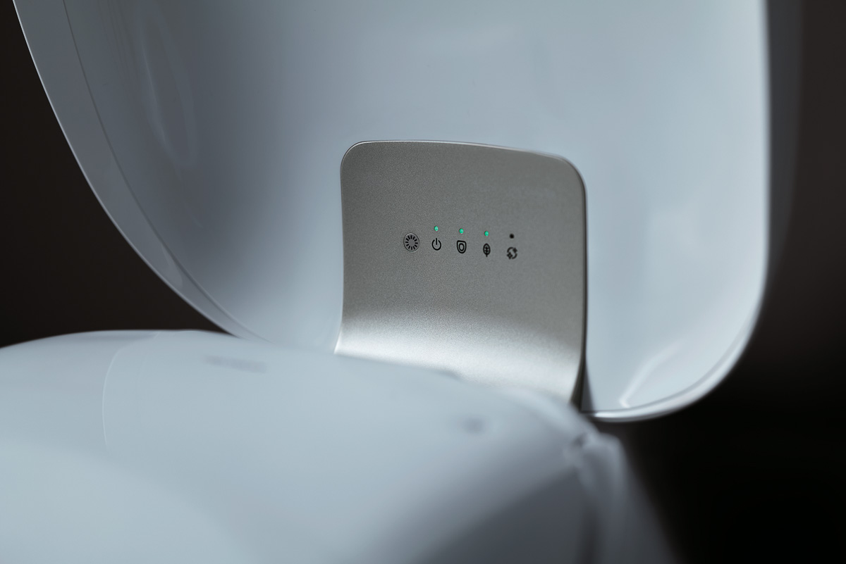 ▲フタを閉じた状態だけでなく開けた時も美しく見えるように、継ぎ目のないヒンジや、樹脂製だがまるで陶器製に見える便座などにもこだわってデザインされている
