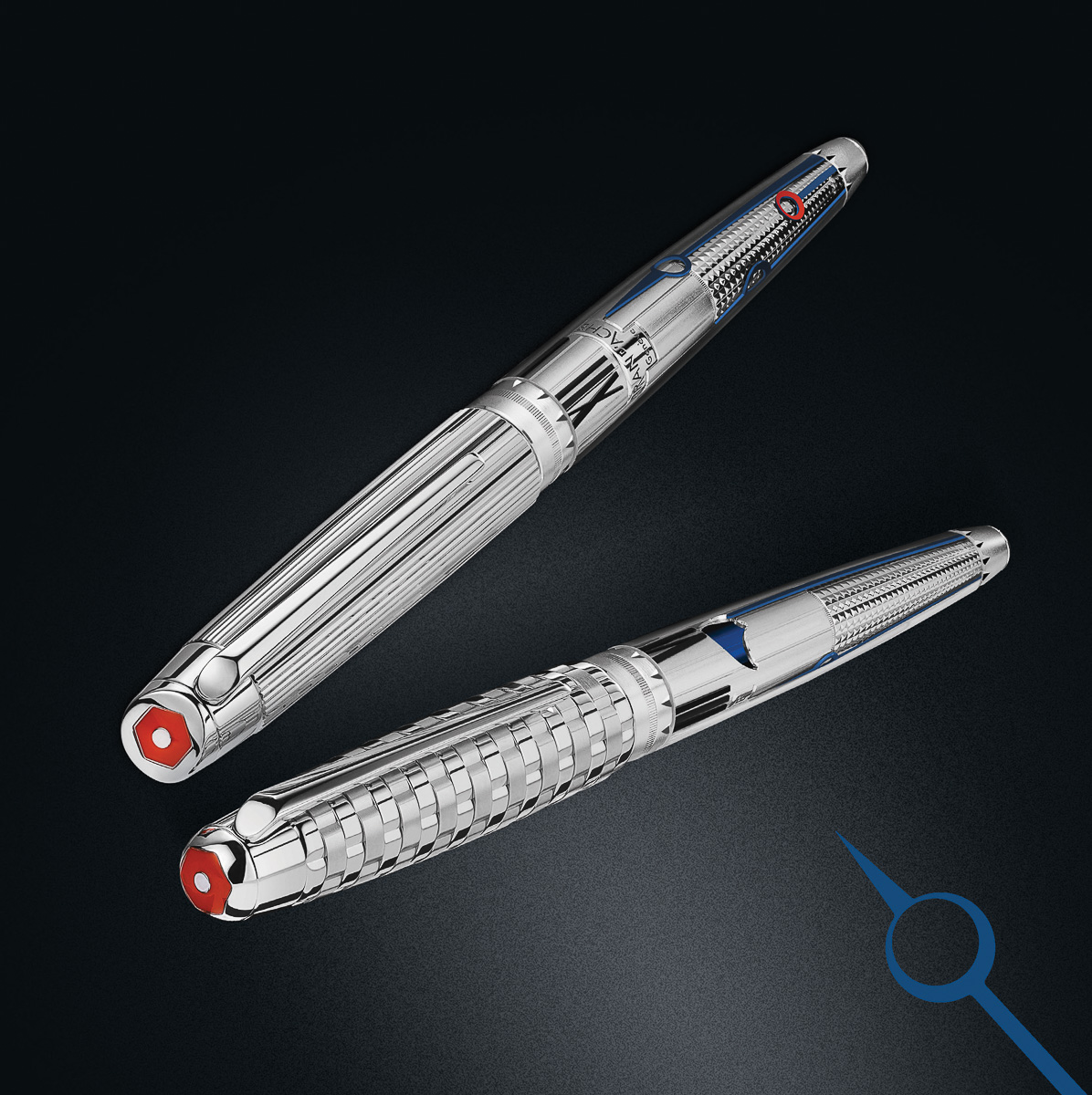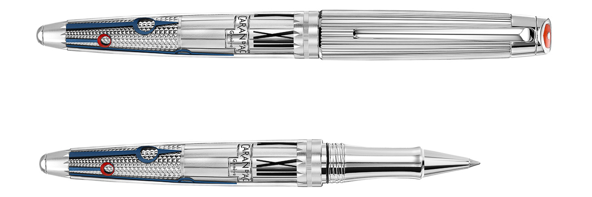 100年を超える歴史を持つスイスの老舗筆記具メーカー、カランダッシュが、同国の象徴でもある高級時計をオマージュし作り上げたローラーボール(水性ボールペン)。リングに刻まれた120の目盛りや、リューズとダイヤルをイメージしたシルバー/ロジウムコートが施されたふたつのキャップなど、あらゆる部分に腕時計に通ずる装飾が散りばめられている。