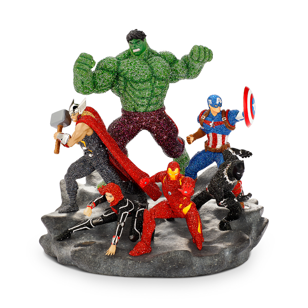 マーベルが生み出した6人のスーパーヒーロー“アベンジャーズ”を、世界有数のクリスタルメーカー・スワロフスキーがオブジェ化。熟練の職人チームが約6万3900個のクリスタルを使い、独自技法を用いて完成させている。そのセッティングに要した時間はなんと542時間! ファンならずとも一度は見てみたいと思わせられる逸品だ。30×26×27cm