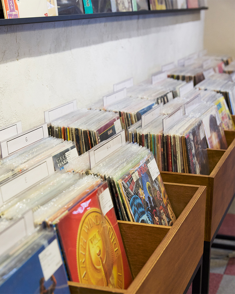 「もともとは“お箸の問屋”だったんですよ」そう教えてくれたのは、オーナーの新川さん。古い建物の落ち着いた空気とレコードの背表紙がよく似合う空間です。