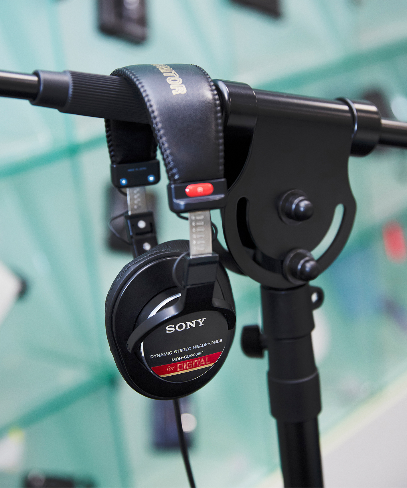 ▲初代ウォークマン(1979年発売)に付属していたヘッドホン「MDR-3L2」。ソニーの“音を届ける”技術は、のちに“音を作る”現場へと発展し、「MDR-CD900ST」誕生の礎となりました