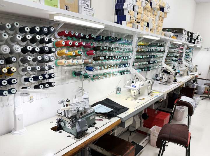 ▲ミシン糸は異なる太さ、色などのものを常時1000以上準備して様々なお直しに備えています