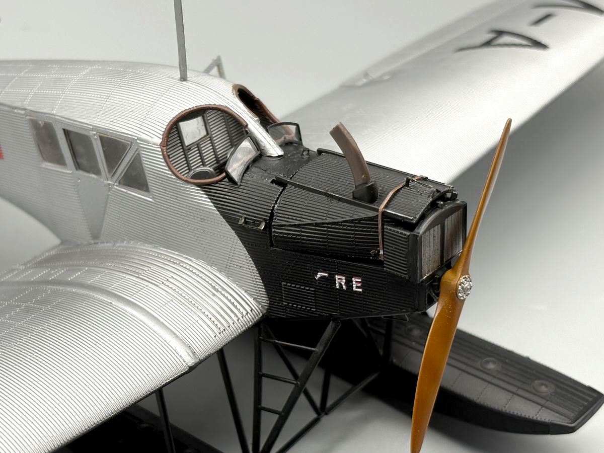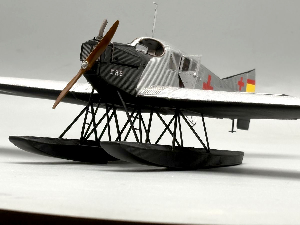 ▲機首から機体下面、フロートはセミグロスブラックで塗装している。後のルフトハンザの「F13」も基本は銀×黒のカラーリングとなる。ある意味、いかにもドイツ機らしいカラーリングである