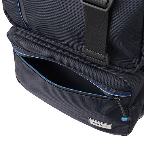 もちろん機能性に加え、所有する喜びもプラス。上品なダークネイビーをベースに、内装やファスナーにアクセントとしてANAを象徴するブルーを配置。ディテールに関しても航空機カーゴのネット風ポケットや六角ボルトや工具を模した引手と、思わずニンマリしてしまうほど。ちなみに3wayバッグとリュックの背面には機影のエンボス加工も。バッグ下ろさないとわからない場所にもこだわりたっぷりです。