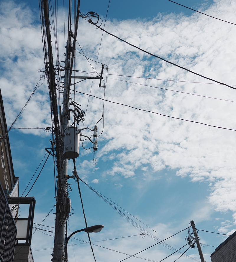 複雑に入り組んだ電線の一本一本までしっかりと解像していて、本機とレンズの描写力の高さがよくわかる一枚。