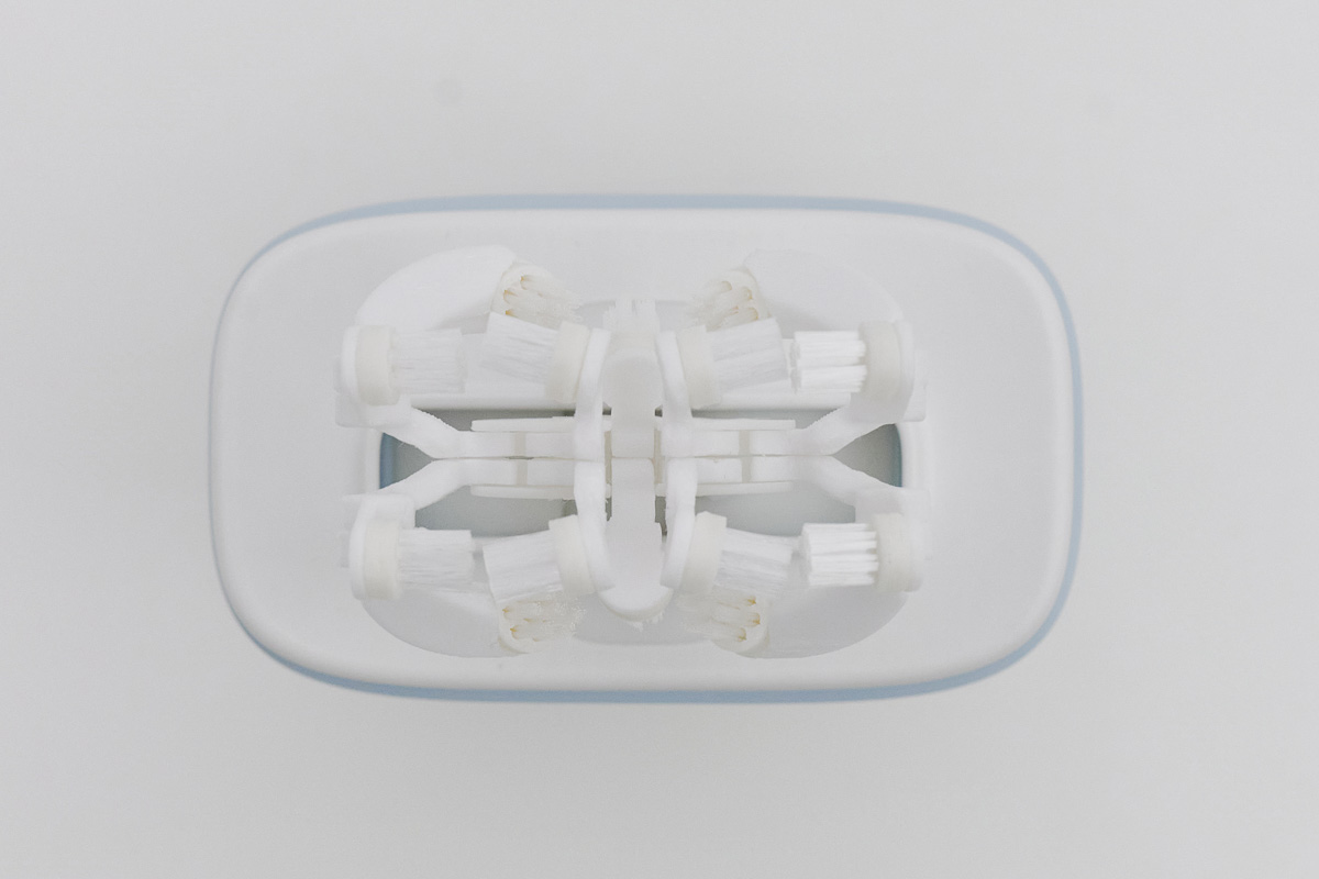 早稲田大学発のロボットベンチャー企業・Genics(ジェニックス)が開発した「g.eN」は、歯磨き機能と口腔内マッサージ機能を搭載した全自動の口腔ケアアイテム。使いたい機能に合わせてケアパーツを交換し、電源スイッチを押すだけで作業がスタートします。