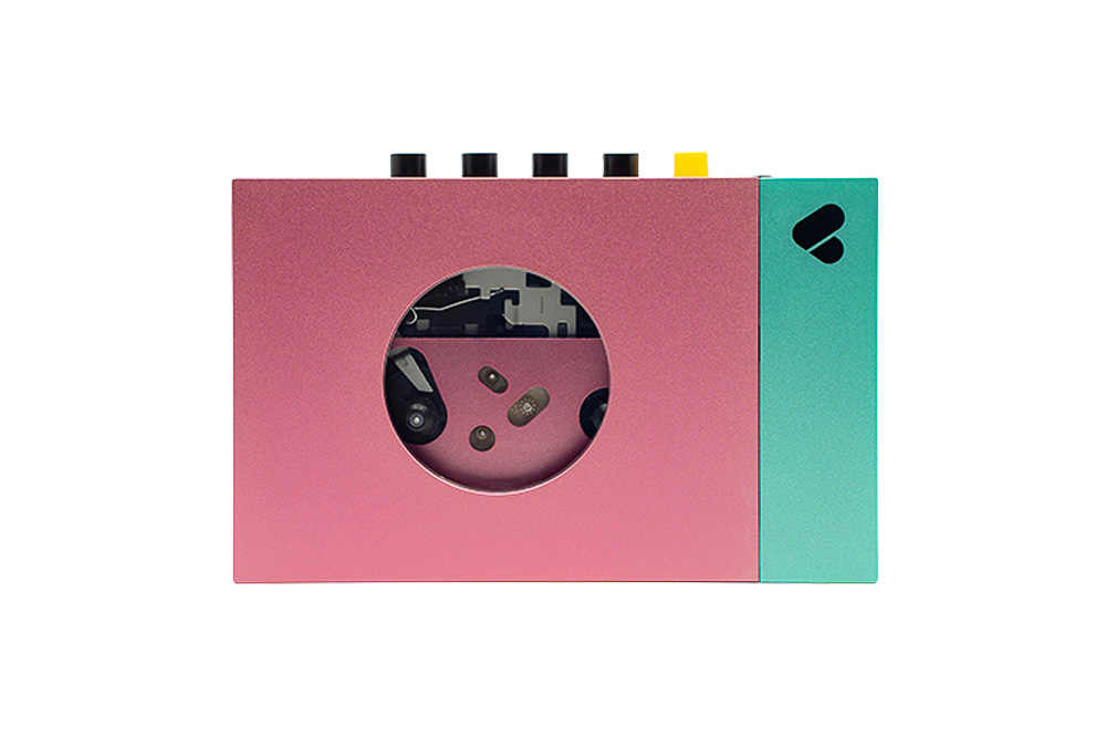 フロント部分には印象的な丸窓が設けられており、ゆっくりと回転するリールの動きを眺められるのも、カセットプレイヤーならではの醍醐味です。