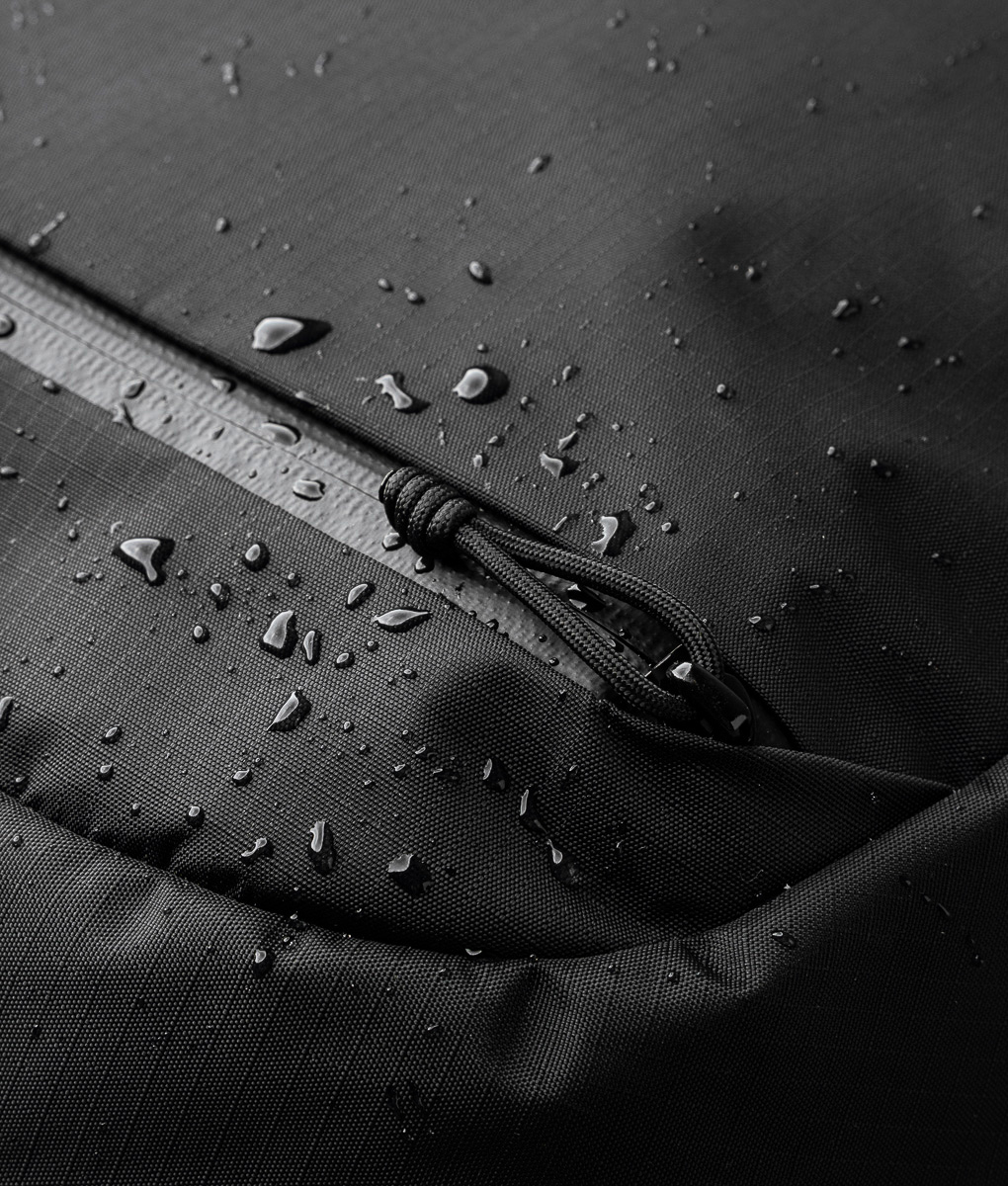 また表地には、高い耐久性と耐候性を備えたリサイクルナイロン生地 Axoflux 210D リップストップを採用。YKK アクアガードジッパーとの併用で、突然の雨降りを始め水濡れ対策も万全です。