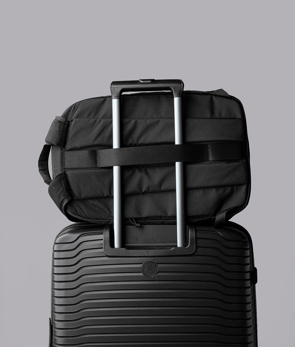 プラスして、背中部分のサイドにはパスポートなどを入れておける隠しファスナーポケットも装備。バックパックは貴重品管理に気を使うものですが、これなら安心ですよね。ほかにも背面にはキャリーハンドル用のベルトを、ショルダー部分には別売りのHUBアクセサリーが装備できるループも用意。自分の使いやすいようカスタムできます。