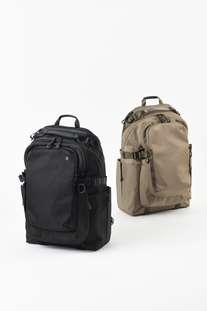 もう一つの「XTREC レイヤードバックパック」(2万5300円)は、生地やベルトを重ねた立体的な構造がポイントで、容量は約26L、重量は1070g。ガジェット類や厚みのある荷物を細かく仕分けしたい人に向いたつくりです。どちらもグレージュとブラックの2色展開で、冬のアウターにも馴染みやすい落ち着いた色味です。