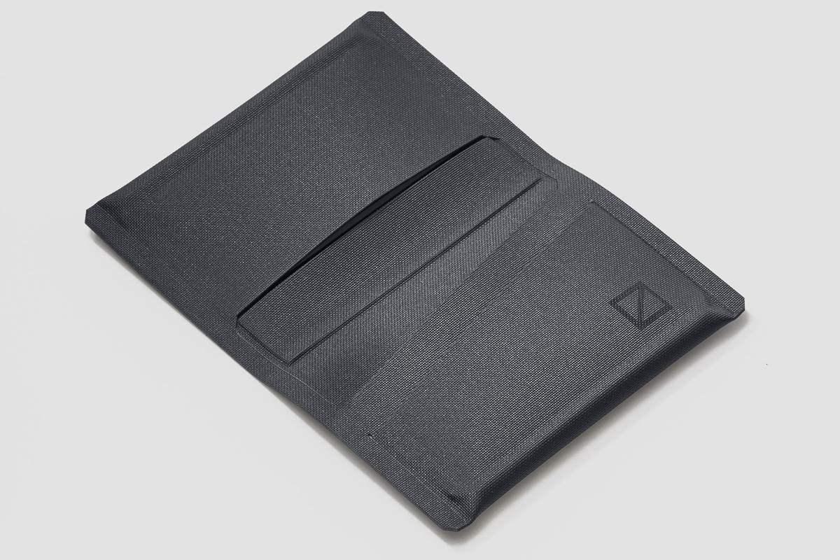 また、レーザーカットと高周波溶着によって作られており、糸や縫い目がないため、圧倒的な薄さを実現。最も厚い部分でも12mmしかないので、ワイシャツのポケットにもすっぽり収まります。