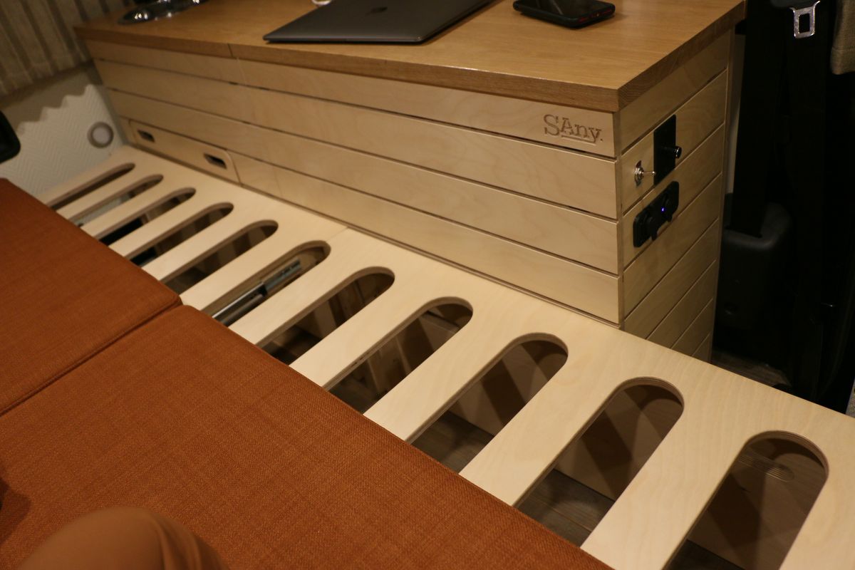 筆者もベッドキットを装着した「ハイエース」に乗っていて、実際に車中泊などでも使用していますが、「SAny.VAN」はそれと比較してもワンランク上の快適さ。市販のベッドキットはマットを併用しないと寝心地が悪いものもありあますが、「SAny.VAN」のベッドはクッション厚も十分で普通のベッドと変わらないと感じる心地よさでした。