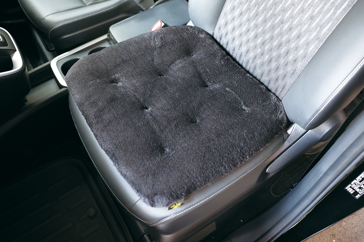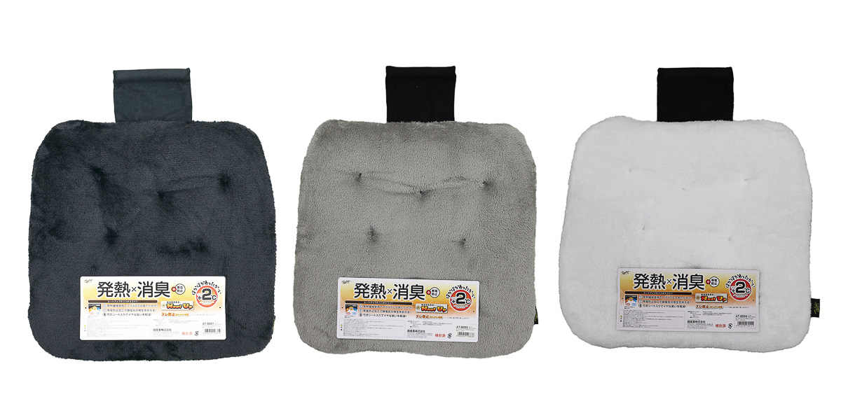 発熱繊維を使用したシングルクッションで、お尻がサポートされるのと同時にじんわりとした温かさが感じられる。帯電防止加工により静電気の発生も抑えられ、竹炭効果によりイヤなニオイも軽減。表面はふわふわボアで手触りもいい。