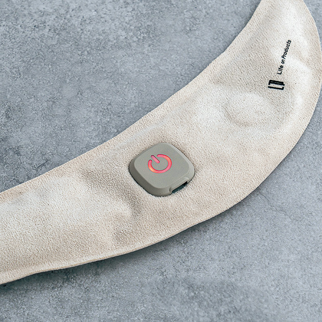 シートに取り付けるランバーサポートで、ヒーターが付いているので腰をサポートしつつ、じわっと温めてくれる。電源はUSBなので、オフィスや家でも使用可能。後ろに2本付いているベルトで、好みの角度に調節できる。