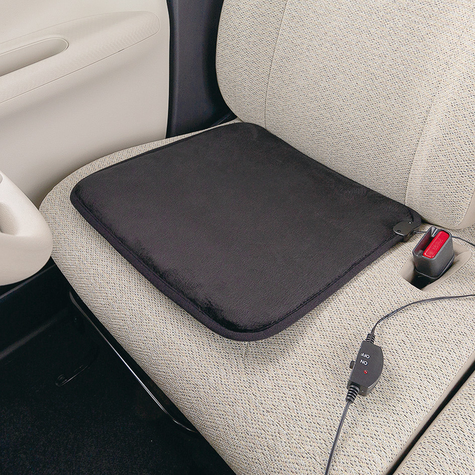 シートに敷くだけで使える、電熱ヒーター付きのクッション。高温になったときは一旦加熱がストップし、低温になったら再加熱してくれる。ON/OFF切り替えスイッチ付き。