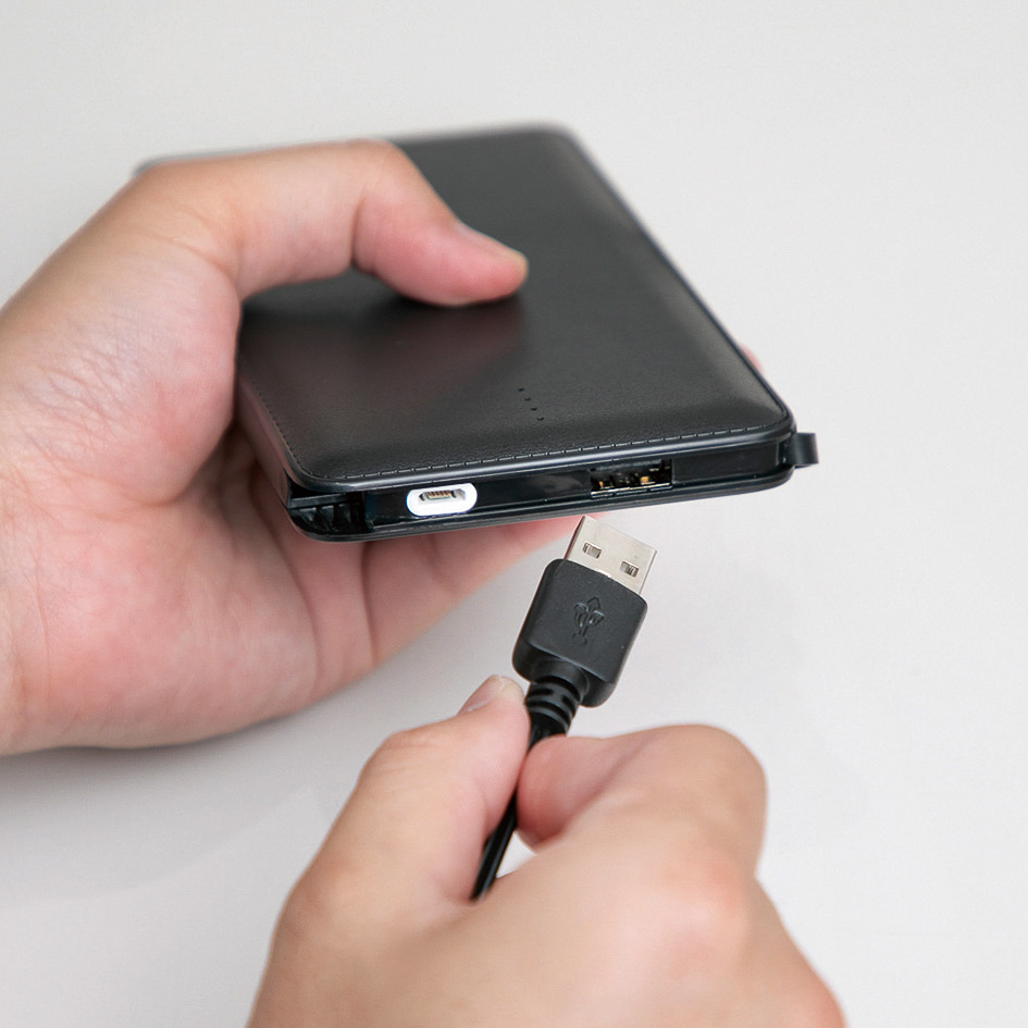 ▲USB電源なので、モバイルバッテリーを使えばオフィスや家でも使える