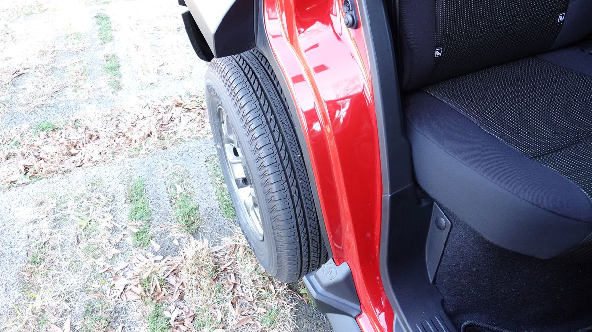 ▲ひとつ気になるのが、リアドアを開けた際にオーバーフェンダー部分に大きな切れ込みが出現して、タイヤが剥き出しになること。パンツスタイルなら問題なさそうだが、ロングスカートだとタイヤに触れて汚れてしまうかもしれない。社外品でこの部分を覆うマッドガードも販売されている