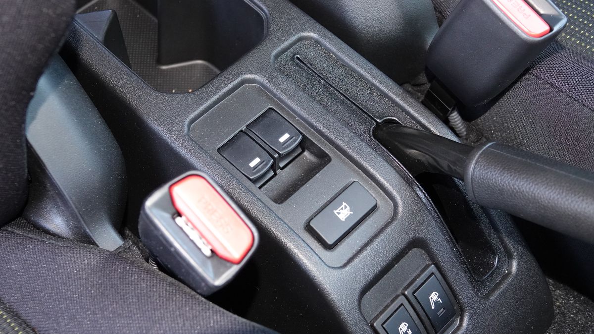 ▲運転席からリアウインドウの開閉を行うスイッチはセンターコンソールに設けられた