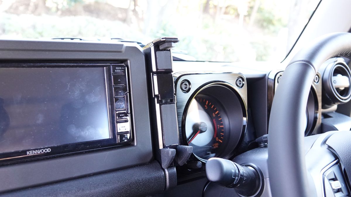 ▲インパネのデザイン・レイアウトはジムニーと共通なので、ジムニー用の社外品をそのまま利用できる