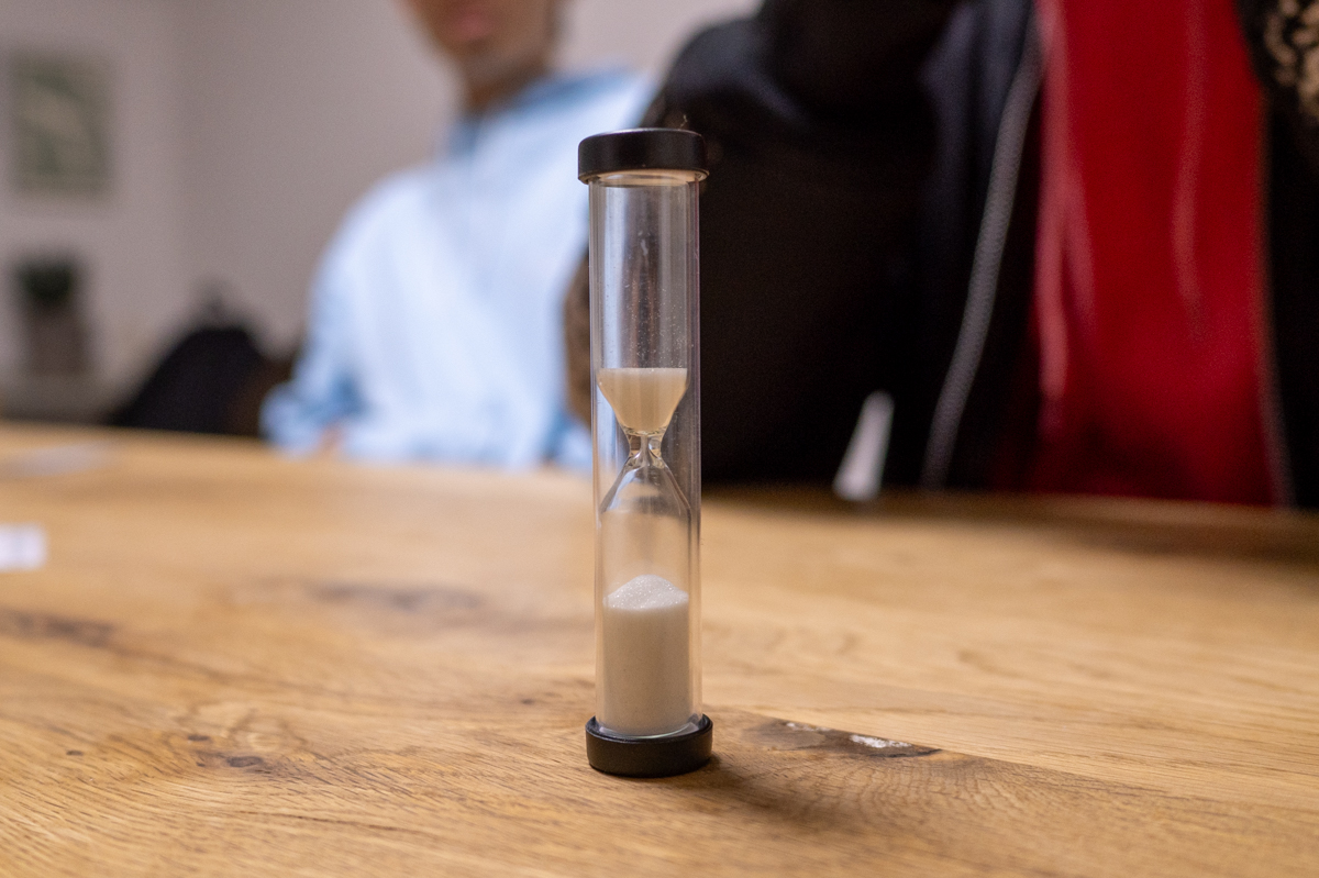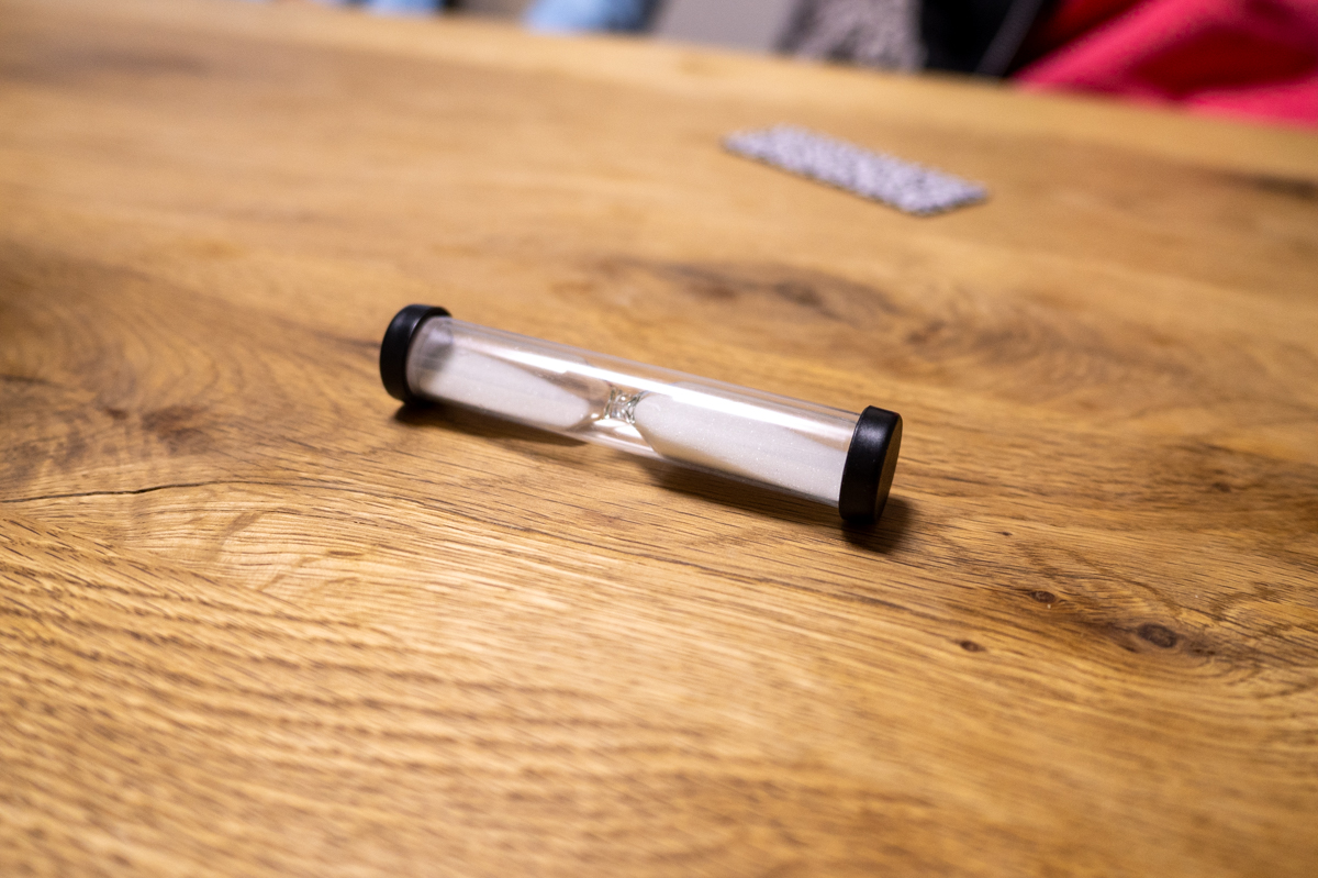 この時点で前半戦は終了し、“マスター”はすぐに砂時計をひっくり返して推理パートをスタートさせます。推理パートでは、ひっくり返した砂時計の時間がなくなるまでに、“誰がインサイダーなのか”を当てるために議論していきます。