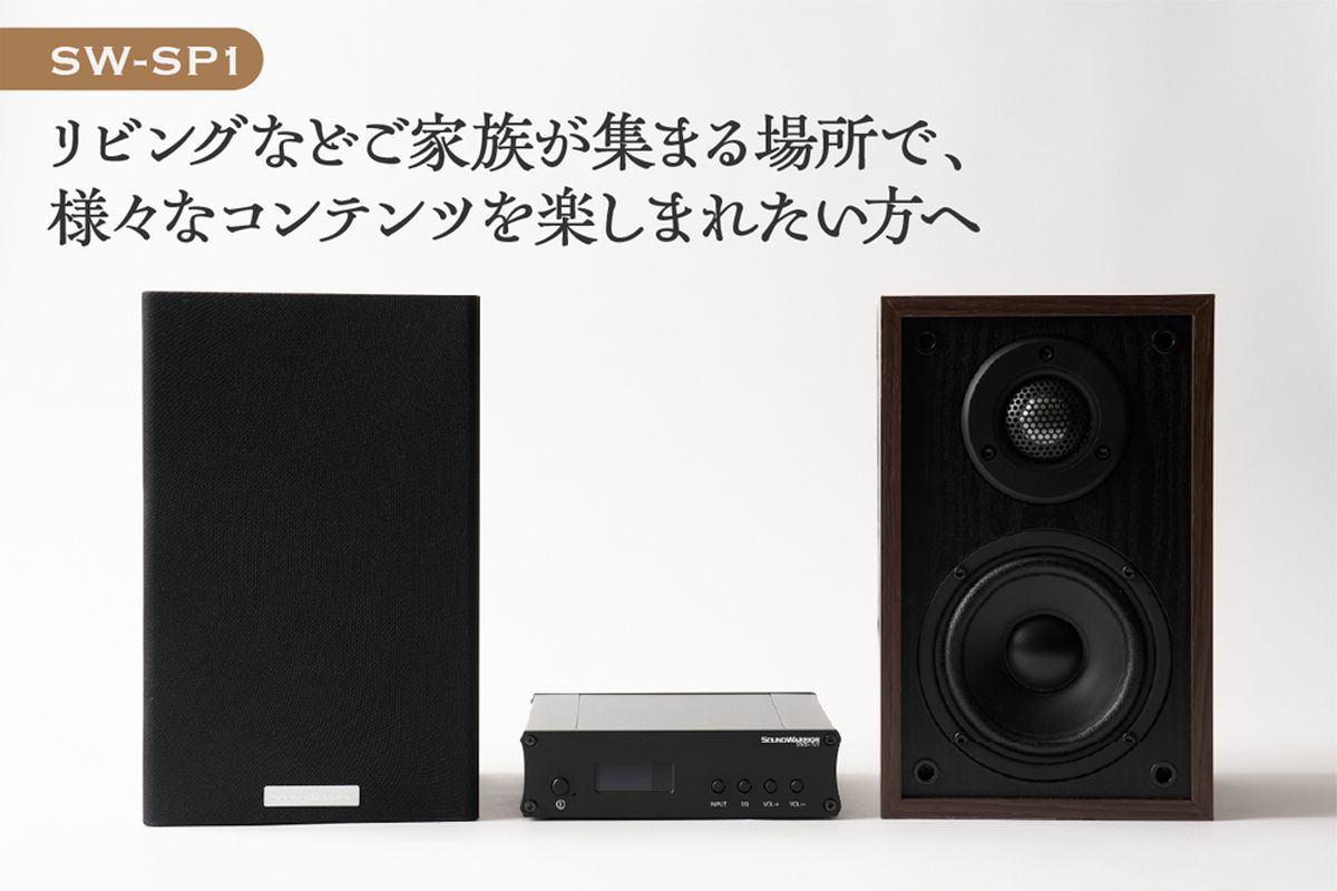 ちなみに今回の先行販売ではスピーカーセットも用意されていて、スピーカーはブックシェルフ型スピーカー「SW-SP1」と、 キューブ型スピーカー「SW-SP3」の2種類。リビングのような広い空間ならブックシェルフ型、寝室などの広くない部屋ならキューブ型がいいかも。ちなみにサブウーファー用の3.5mmステレオミニジャックも付いてます。
