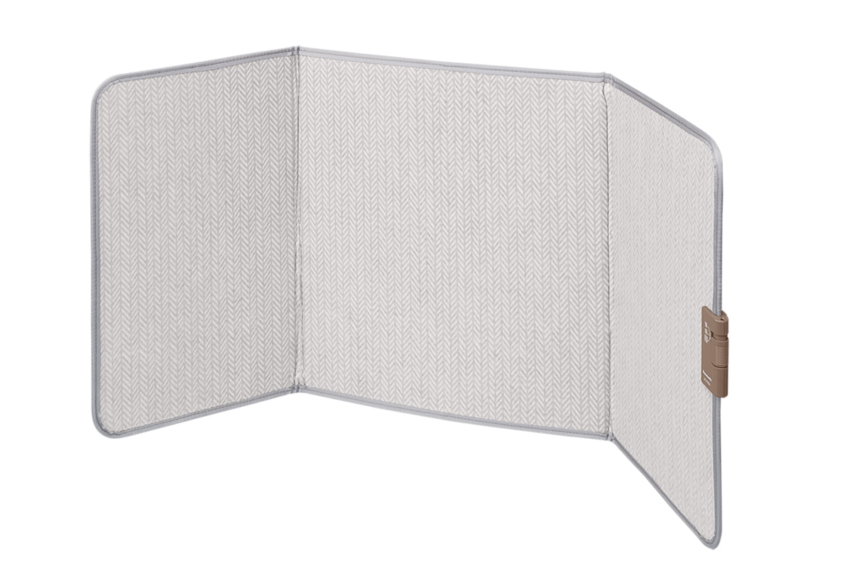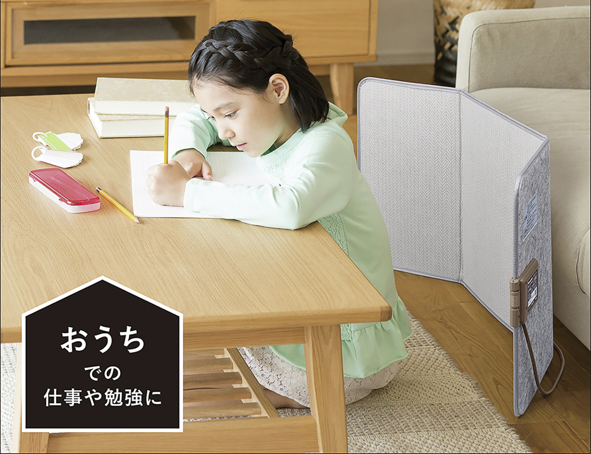 仕事や作業中、「上半身を温めると、ついウトウトして集中できない」というお悩みを解決してくれるのがコレ。折り畳み式で持ち運びにも収納にも便利。パネル展開時のサイズはH45×W48×D30cmでしっかりとカバーしてくれる。