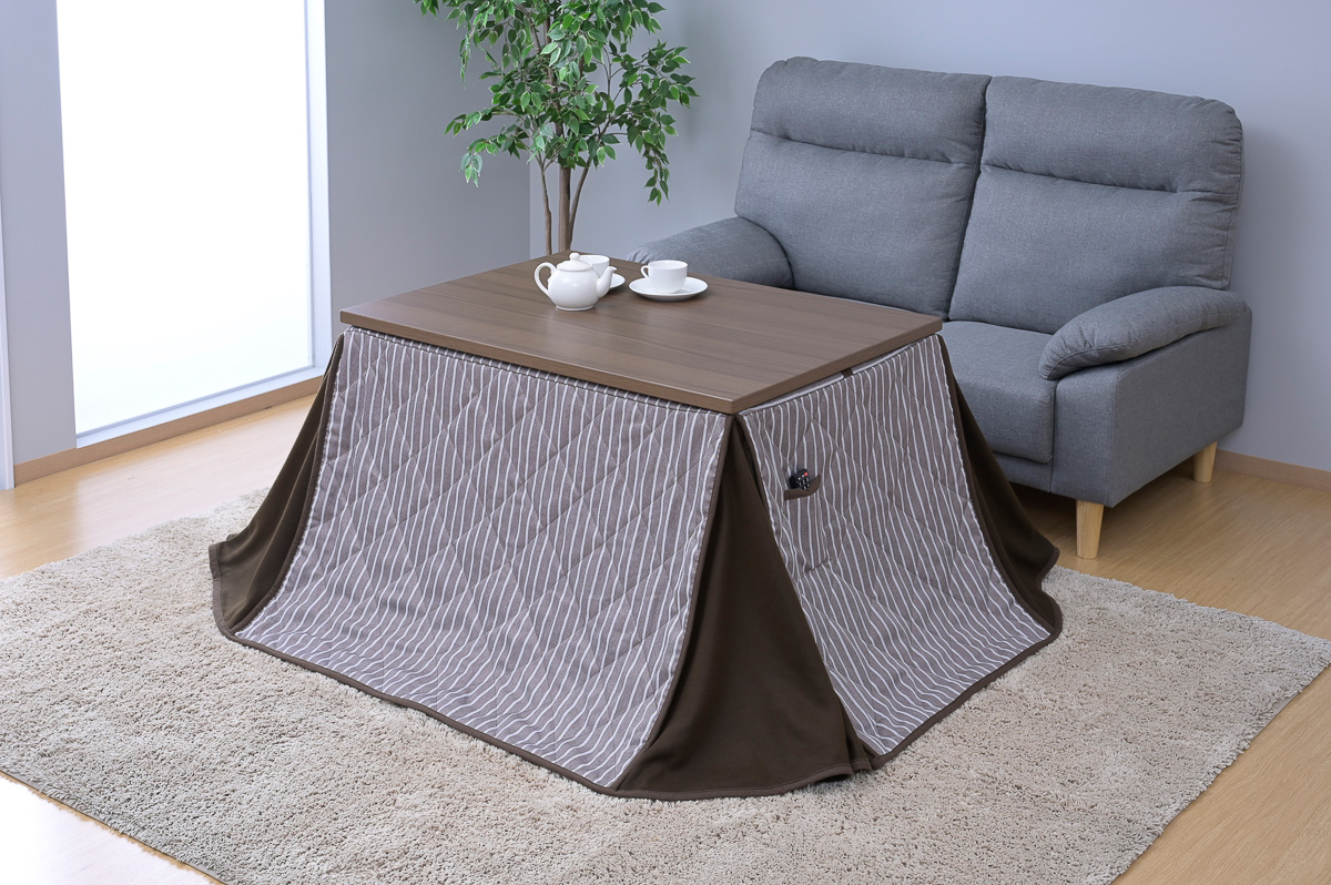 サイズは、ふたり~3人でちょうどいい天板105×75cm以外に、ひとり~ふたり用(天板80×80cm)、4人でもゆったり(天板120×80cm)を用意。布団は自宅の洗濯機で丸洗いでき、手入れがしやすい。