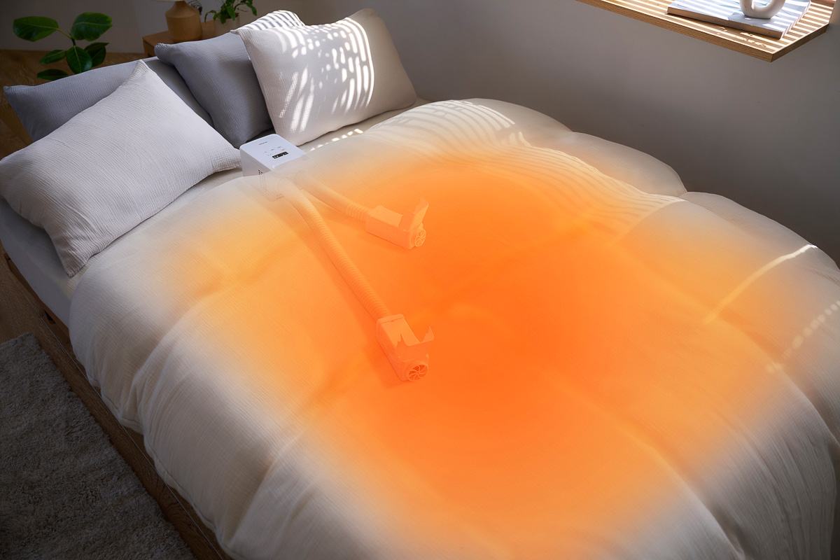 ▲ノズルが2本あるので、2組のふとんやシューズを同時に温め&乾燥ができる。子育て世帯にありがたい限りだ