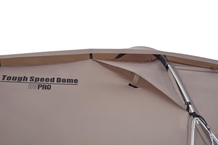 派手な機能で目を引くタイプではありませんが、「とにかく扱いやすい」「初めてでも張りやすい」という安心感があり、キャンプの“1張り目”として選ばれてきたシリーズでもあります。いわば、日本のファミリーキャンプの標準形を支えてきた定番アイテム。そのタフシリーズに、2ルームでも扱いやすくする方向で進化させたモデルとして登場したのがこの「タフスピードドーム」。従来のタフさを保ちながら、設営の負担を軽くする構造を取り入れた、新しい選択肢と言えそう。
