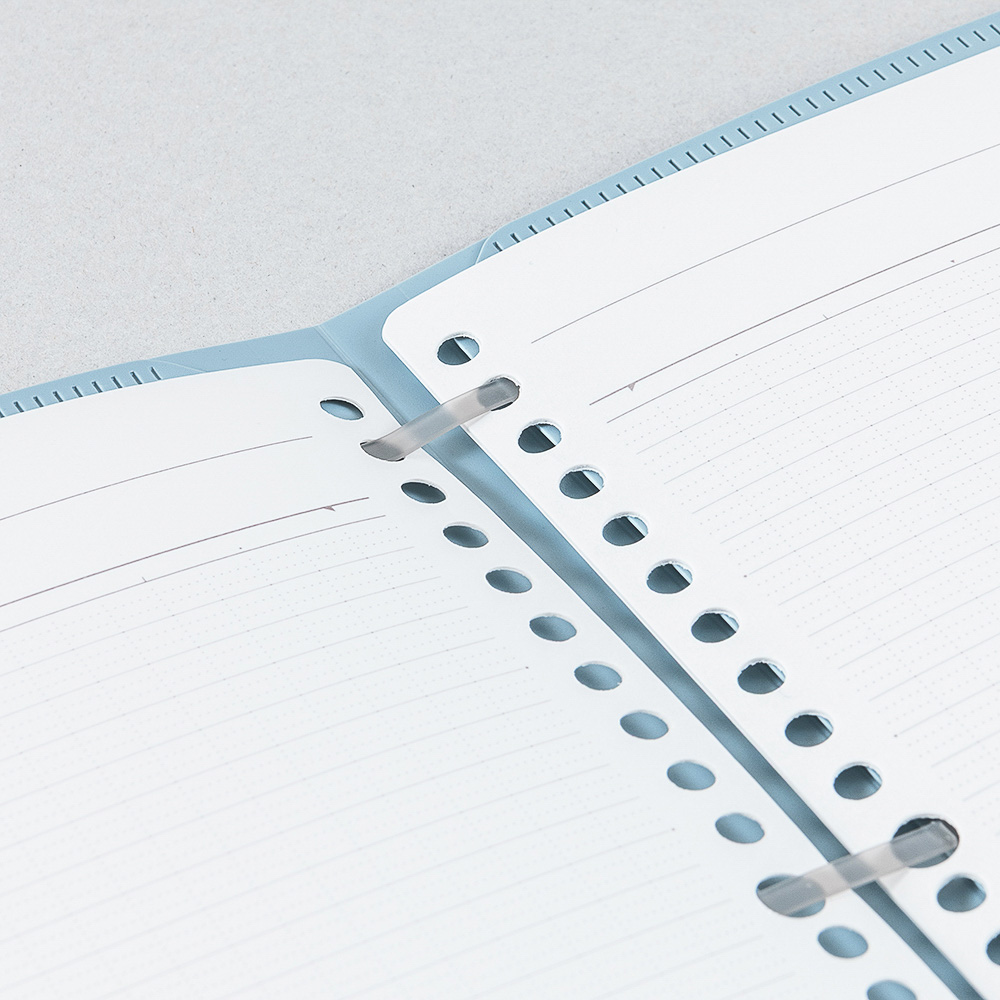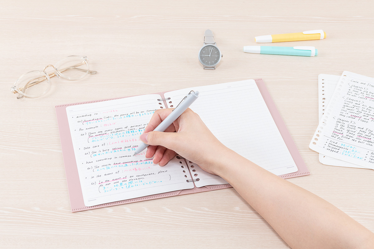 継ぎ足しができる便利さとは裏腹に、「このページどこに入れるんだっけ?」なんて整理整頓に苦労した経験も。さらに、バインダーに収納してしまうと追加で記述する際にリングが手が当たったり、ノートの端まで文字が書けなかったり…。そんなバインダーあるある&ストレスを解消するアイテムがあるのをご存知でしょうか?