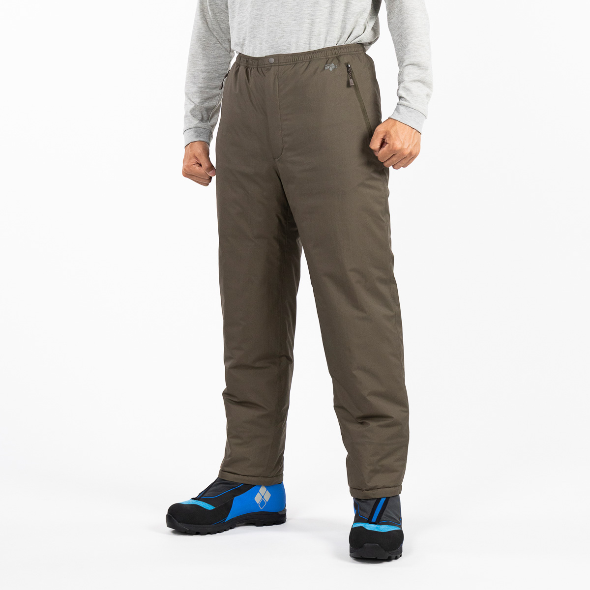 2モデルの違いは中わたの素材。「ダウンパンツ」は水鳥から採取された、軽量性と保温性にすぐれた天然ダウンを使用。当モデルにはわずかな重量で高い保温性を発揮する、800フィルパワーのEXダウンが使われています。