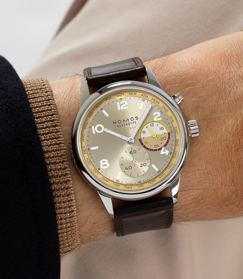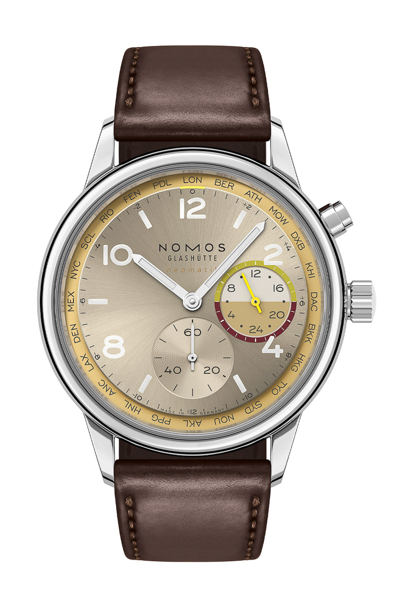 2025年のWatches and Wondersで発表され、世界中のジャーナリストや時計愛好家から注目されたNOMOS GLASHÜTTE(ノモス グラスヒュッテ)の「Club Sport Neomatik Worldtimer(クラブスポーツ ネオマティック ワールドタイマー)」に、趣のあるシャンパンゴールドの文字盤が美しい「Roam(ローム)」と「Reverie(レヴェリ-)」(各74万2500円)の限定カラーが登場します。