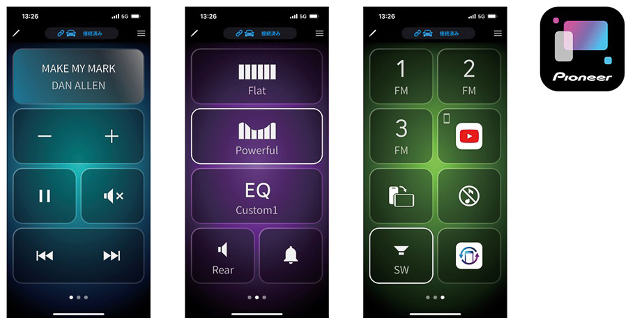 ▲インストールするだけでスマホをリモコンのように扱える。DMH-SF600の画面を切り替えずに各種の主要操作ができて使い勝手抜群だ。