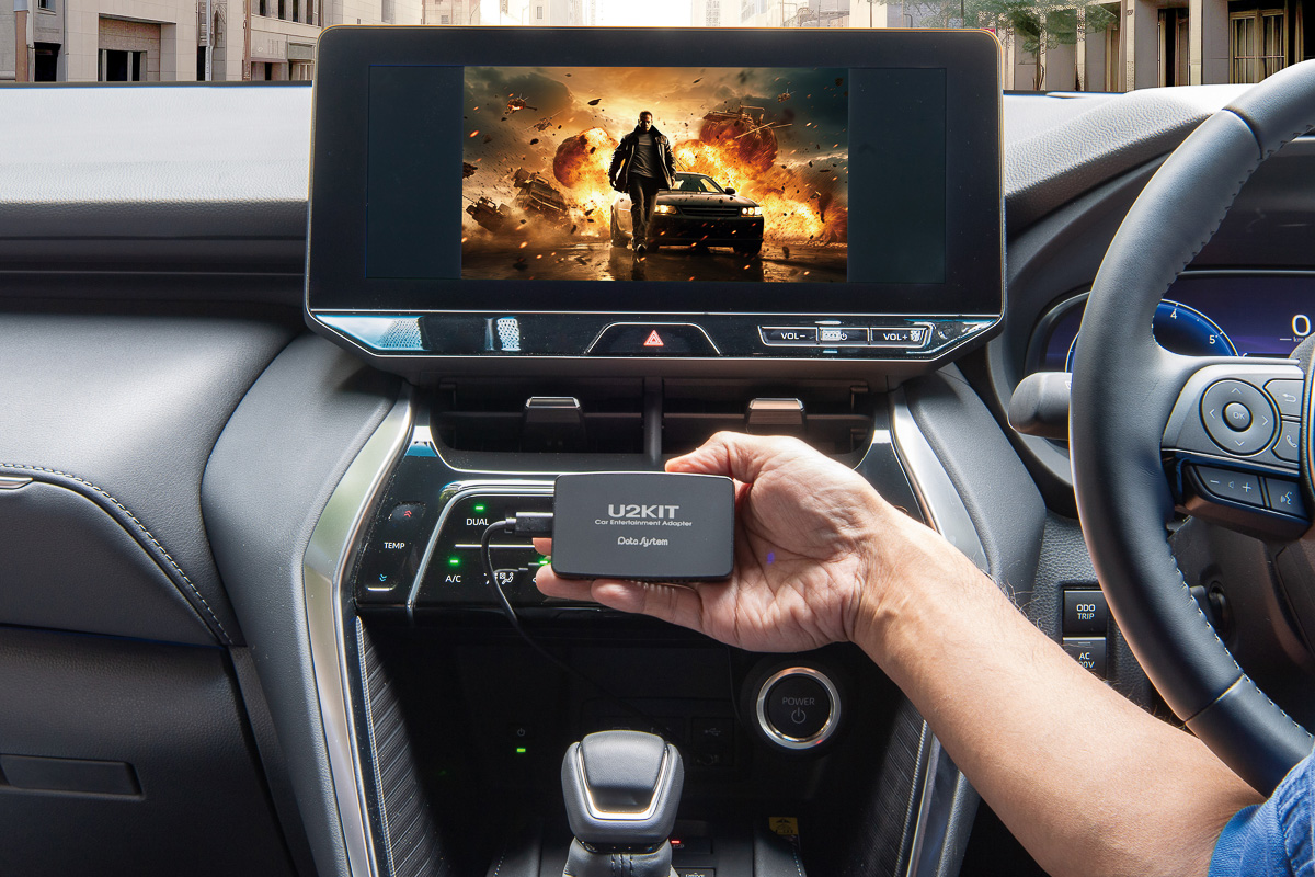 ディスプレイオーディオのUSB端子に接続するだけで、5種類の人気動画配信サービス(YouTube、PrimeVideo、Netflix、U-NEXT、ABEMA)が走行中も楽しめる。また、Apple CarPlay/Android Autoの無線化も実現。