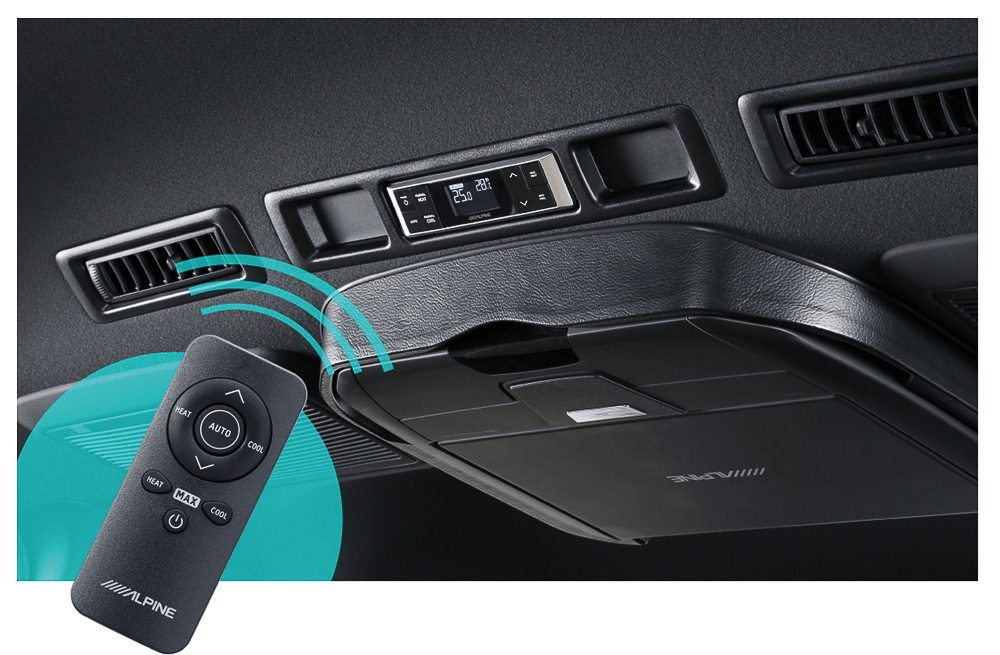 ハイエースの後席エアコンを操作できるアイテム。2つの温度センサーが頭部の高さの体感温度をモニタリングして自動コントロール。操作パネルだけでなく付属リモコンによるワイヤレス操作にも対応している。