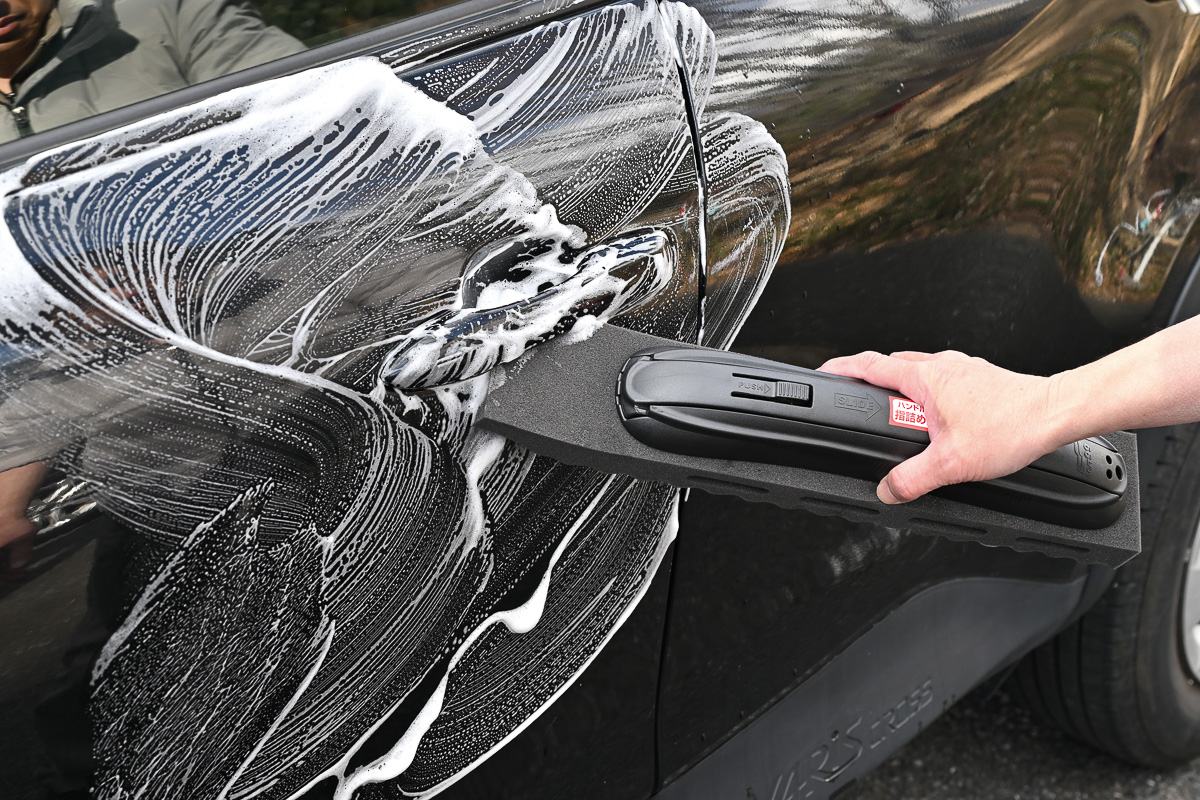 はじめは大きさに驚くが実際に使ってみると作業性に優れ、時短効果も抜群。さすが洗車を知り尽くした、ソフト99ならではの商品といえる
