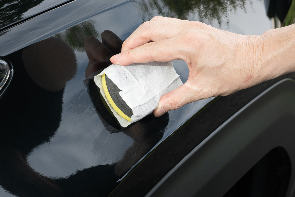▲塗布して拭き上げるだけ。手軽に作業でき、メンテナンスは水洗いだけでOK。白系、黒系、メタリックなど、あらゆるボディカラーに対応