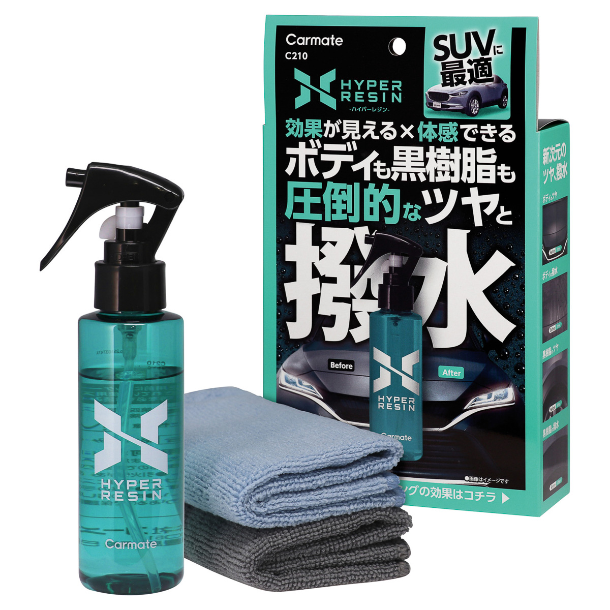 ボディだけでなく未塗装樹脂パーツでも同等のツヤや撥水が期待でき、SUVには特にオススメ。手早く簡単に施工できる作業性の良さも魅力