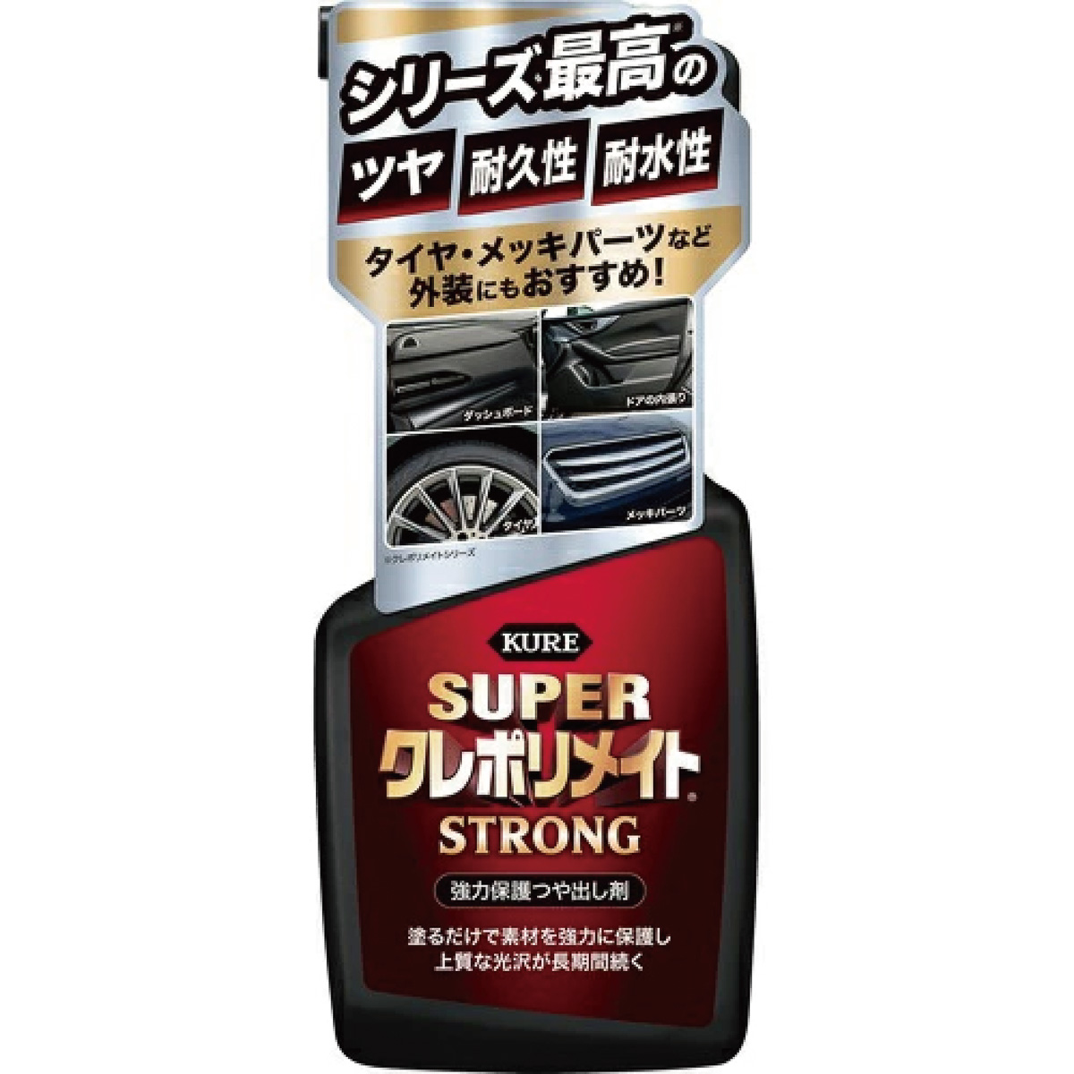 ロングセラーの保護つや出し剤、「ポリメイト」の最強モデル。シリーズ最高のツヤや耐久性、耐水性を備えており、内装パーツだけでなくカウルトップカバーやタイヤなどの外装にも使用できる。メッキパーツや合成皮革にも対応。