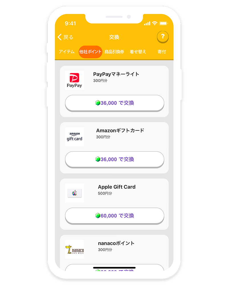 獲得したポイントは、Amazonギフト券やPayPayポイント、楽天ポイントなど、生活に直結する交換先が中心。特定のサービスや用途にひもづかないため、「今日の買い物」「日々の支出」にそのまま使える設計になっています。