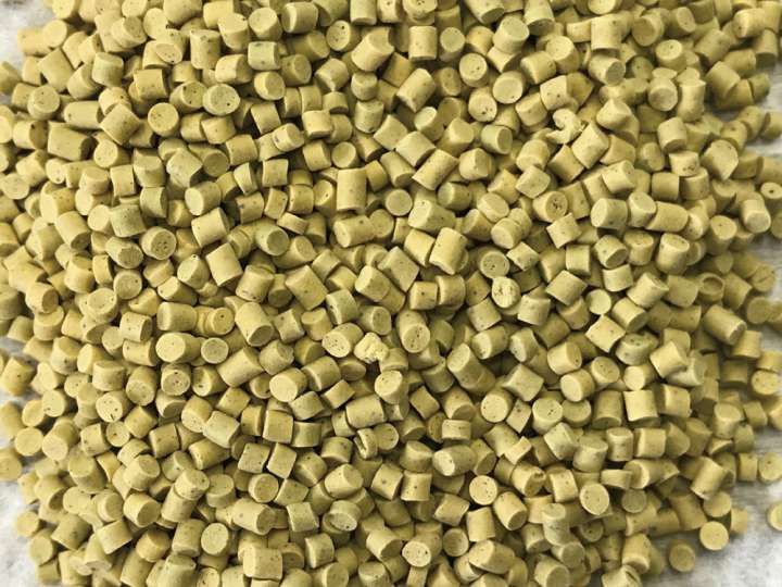 ▲コチラがField Chip G(GreenTea)と呼ばれる、伊藤園と共同開発した茶殻リサイクルシステムを活用し製造している茶殻配合の充填材。サッカー場1面全量使用の場合約43万本(おーいお茶緑茶525ml PET換算)の茶殻をリサイクル活用(ミズノ提供)