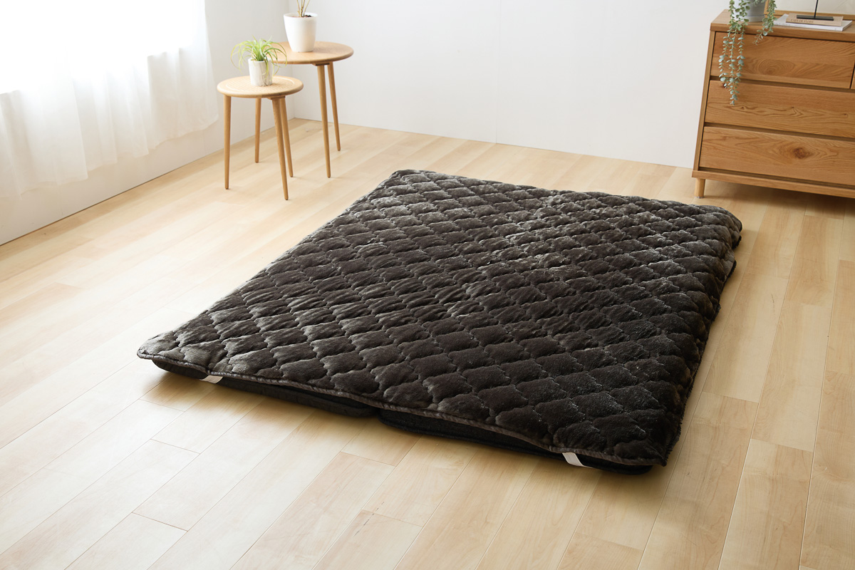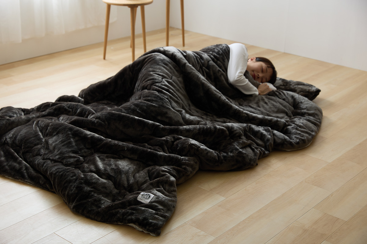 2枚の毛布を縫い合わせ、間に空気の層が生まれ暖かさがアップ。ミニ、シングル、ダブルの3サイズ展開。