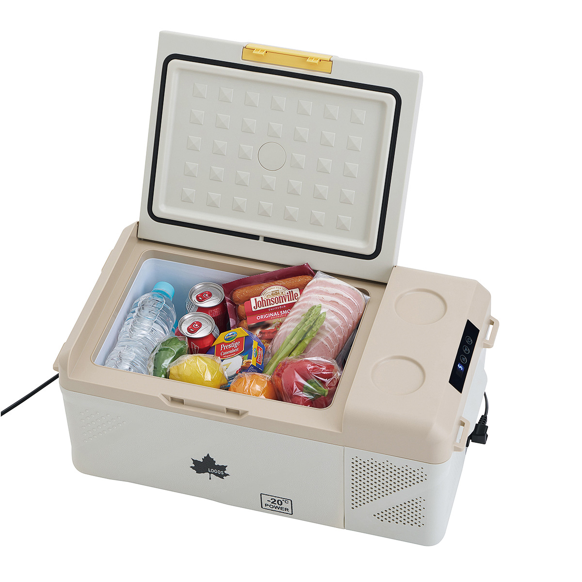 冷却能力は20℃〜−20℃まで設定が可能。容量は16Lで本体には発泡PUフォームを採用し、クーラーボックスとしても利用できる。電源はAC・DCに対応し、操作パネルで温度表示も見やすく設定温度調節も簡単に行える。