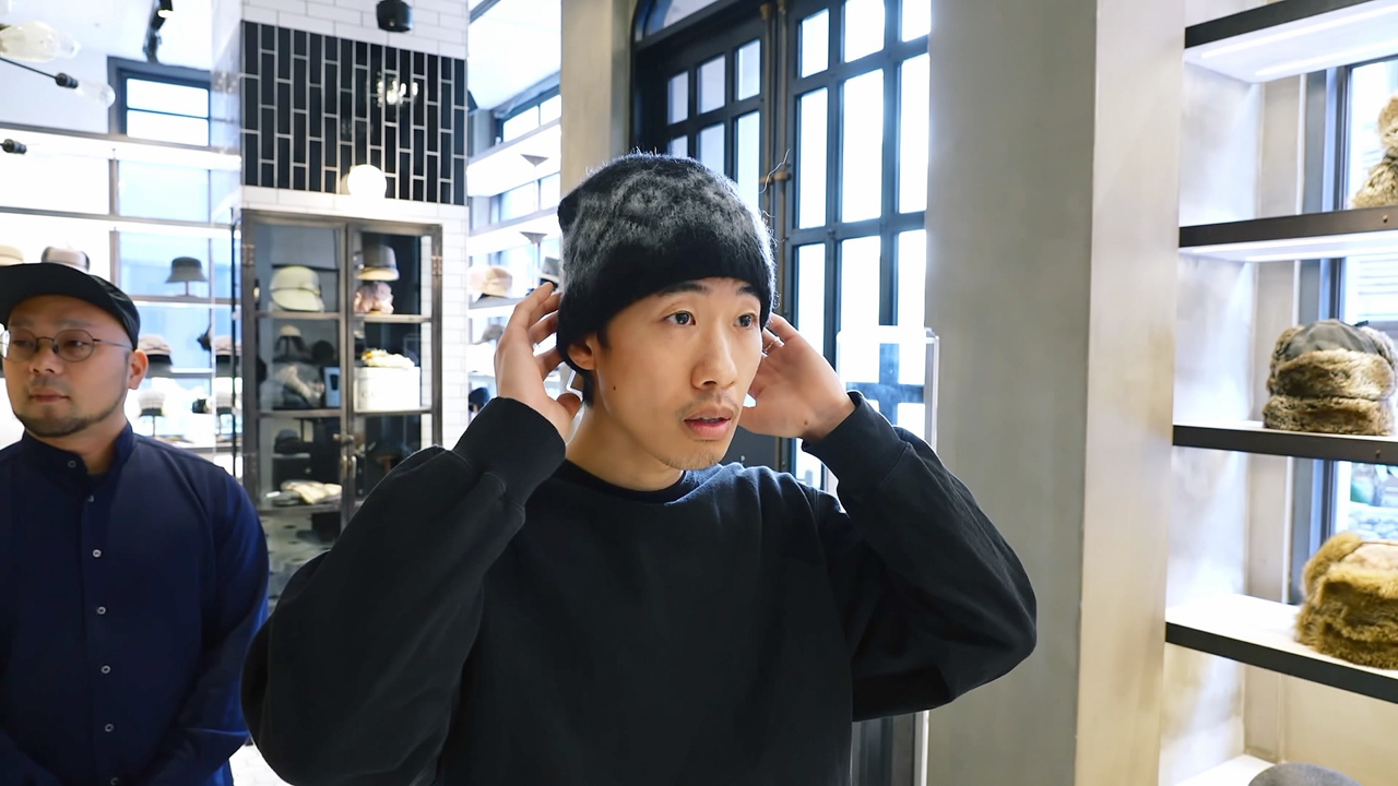 ヤマケン:丸顔だとどうですかね? よくある折り返しが着いている帽子ばかり被っているので、なんかもう少し遊びがあるニット帽が欲しくて。