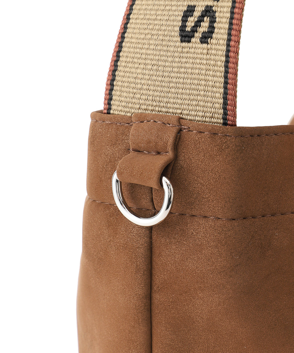 まず目を引くのが、ボディに採用されたスウェード調素材。温かみがありつつ、装いに上品さを添えてくれる質感が特徴です。ピーチスキンのようにやわらかく、思わず触れたくなる手触りのよさも魅力のひとつ。