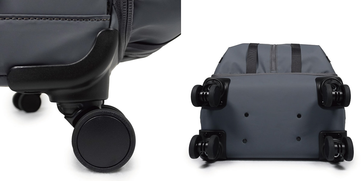 さらに、3段階で高さ調節が可能なハンドルと、耐久性と静音性に定評のあるHINOMOTO社製キャスターを搭載。移動時もスムーズで、長距離の移動でもストレスを感じにくい設計です。