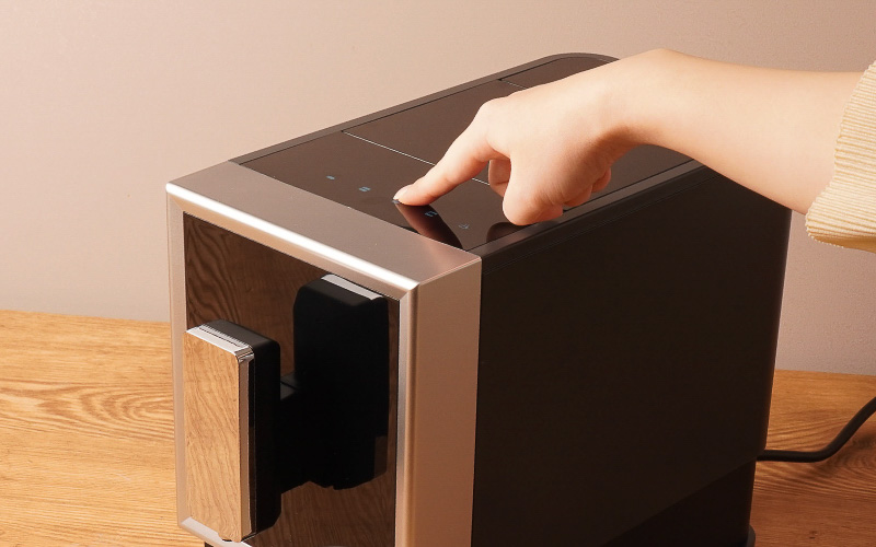 なお、抽出温度はエスプレッソに適した約80度。抽出にかかる時間は約40秒とスピーディーです。操作はタッチパネル式で、水温次第では連続抽出にも対応します。