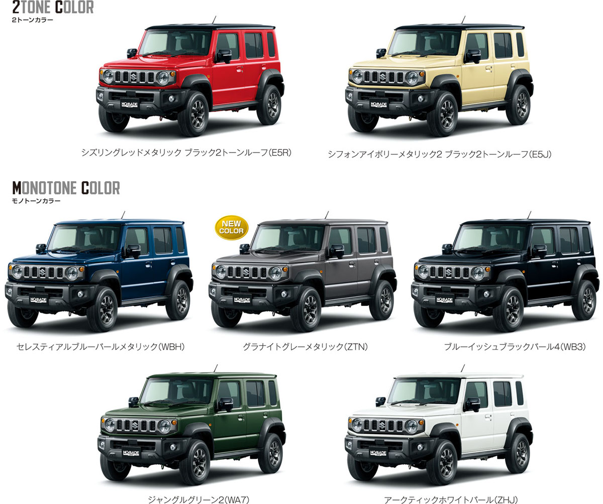 ボディカラーは新色のグラナイトグレーメタリックを追加。色味は異なりますが、ジムニー&ジムニーシエラでもグレーは人気があるため、この新色は人気になりそうです。