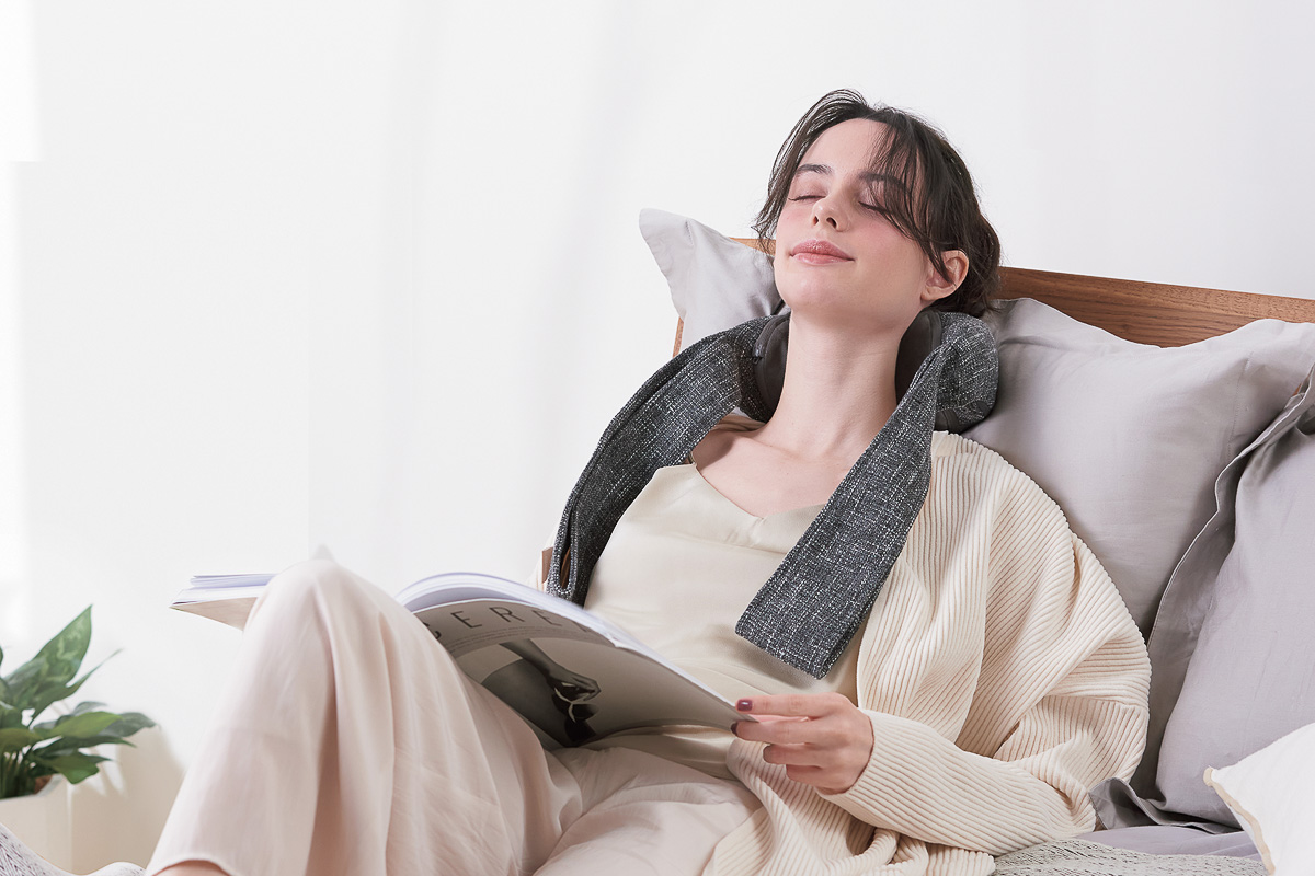 4. 疲れた時、首にかけるだけ。4つの揉玉が首筋をもみほぐす