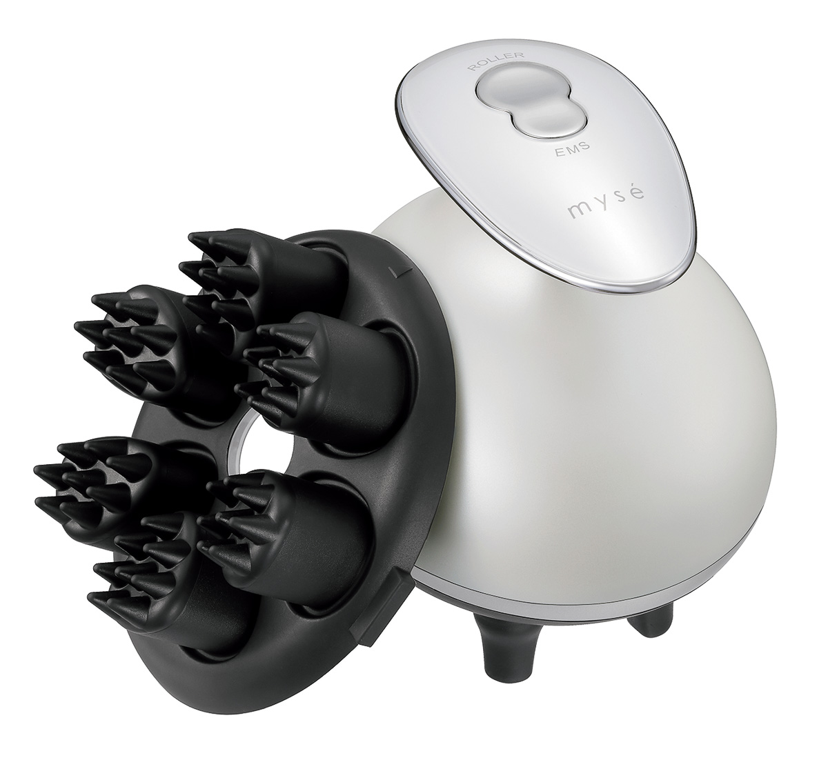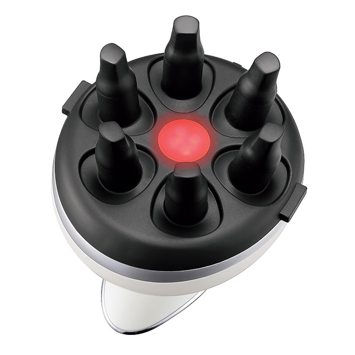 先端をとがらせたニードル形状のアタッチメントと新搭載のEMSで心地よくケアができるヘッドスパマシン。鋭いニードルブラシが頭皮の筋肉を深く刺激し、ラウンド形状でしっかり揉み上げる。